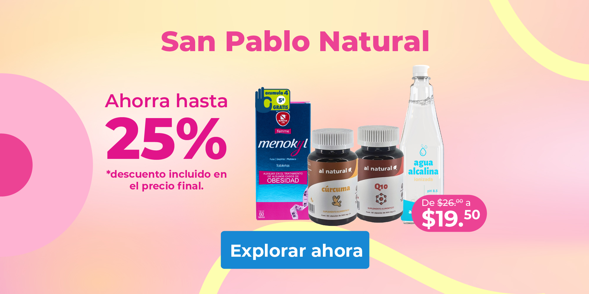 En San Pablo Farmacia, llevamos tus productos hasta la puerta de tu casa. Con nuestra plataforma en línea tienes acceso a una extensa gama de medicamentos, dermocosméticos, artículos de cuidado personal, y más. Además, disfruta de nuestro servicio de farmacia 24 horas, consulta los horarios en nuestras más de 165 sucursales alrededor del país.